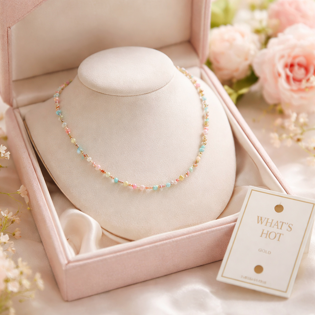 Water Resistant Gold and Multi Crystal Beaded 16"-18" Necklace