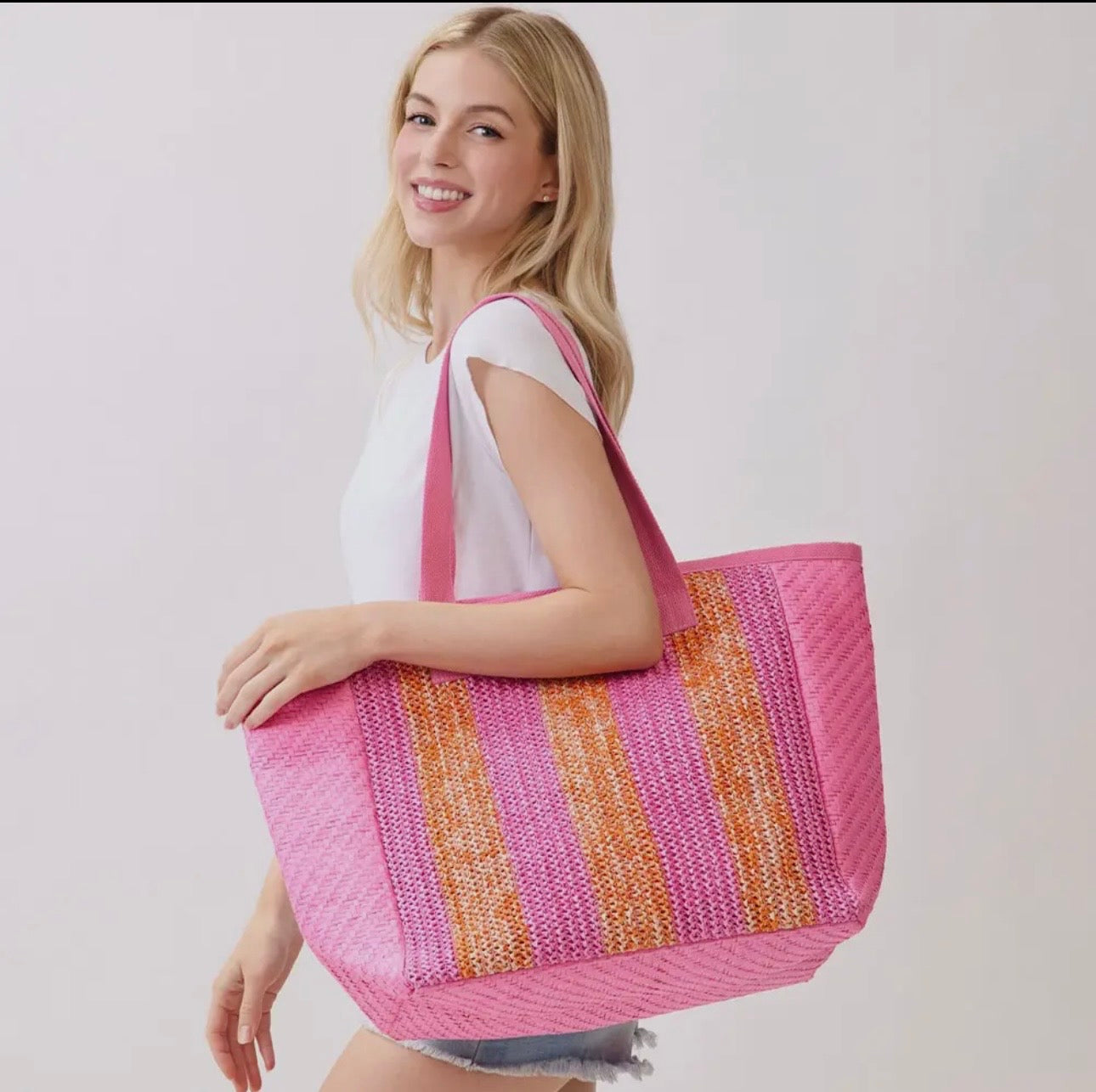 Size : 22" X 14" X 8" Inner Pocket Magnetic Snap Closure Material : 100% Polyester Spacious carryall tote designed for daily errands, travel, and casual outings. Features a roomy interior with comfortable shoulder straps, offering practical storage for essentials while maintaining a relaxed, stylish silhouette. Ideal for boutiques seeking versatile, easy-to-sell everyday bags.