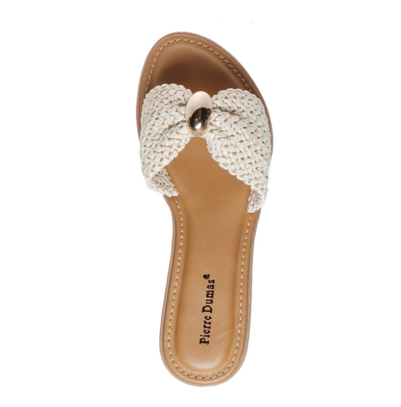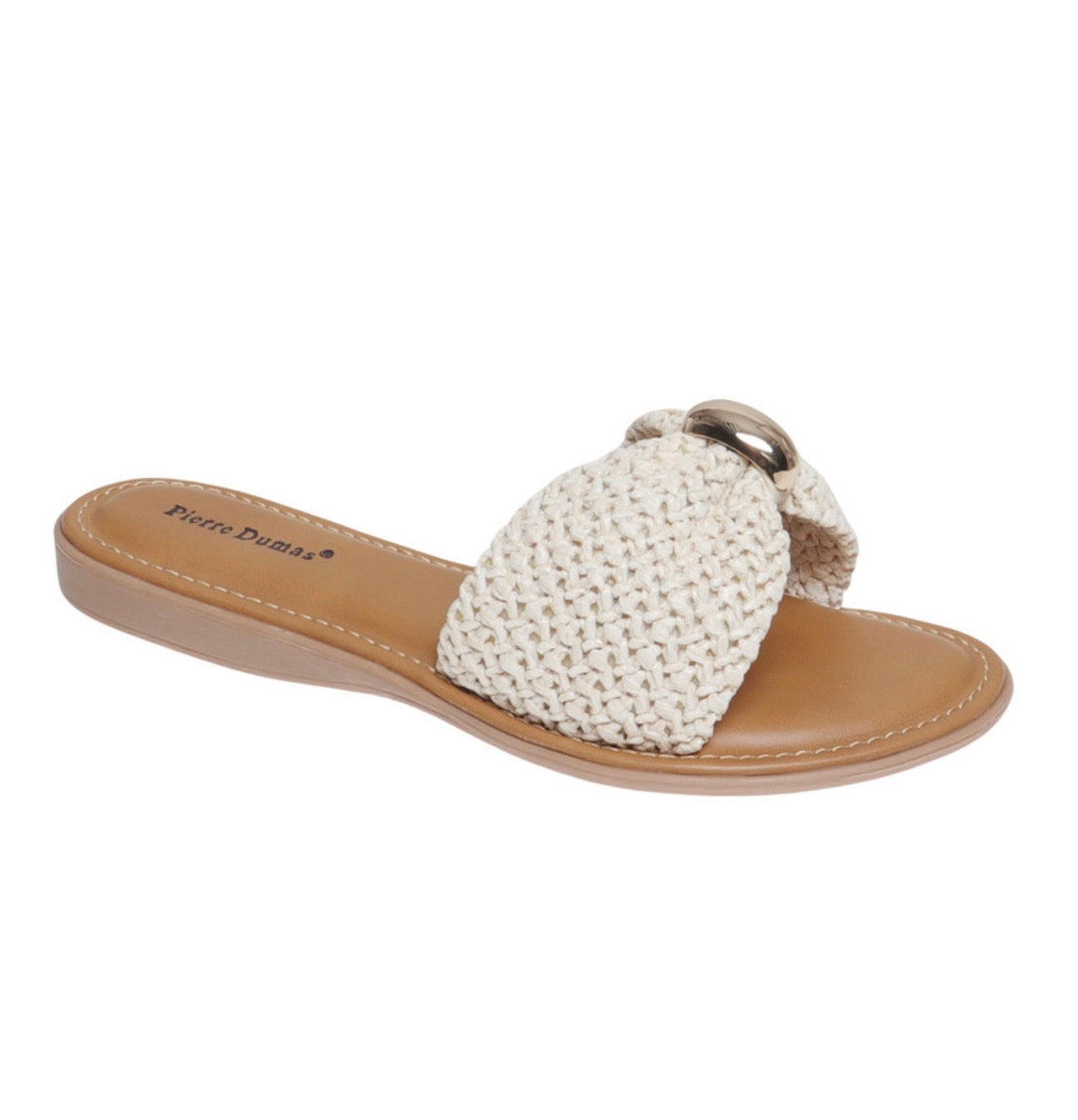 Step into effortless style with the PICK-1 sandals by Pierre Dumas. These charming slides feature a soft, cushioned sole and a playful bow ornament that adds a touch of elegance to your casual look. Designed for comfort and support, they are perfect for all-day wear, whether you're strolling along the beach, running errands, or enjoying a brunch date. Available in versatile colors like black, brown, and cream, these sandals are your go-to choice for any occasion. Treat your feet to the comfort they deserve while stepping out in style!