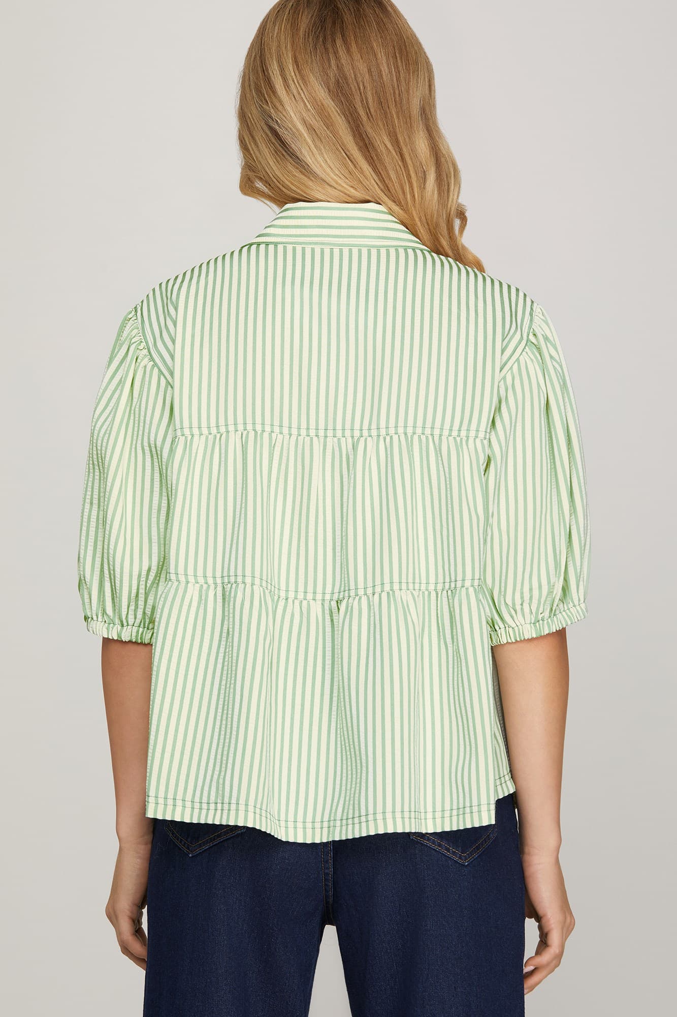 1/2 SLEEVE BUTTON DOWN STRIPED TOP
